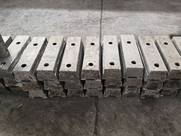 5、根據(jù)工況條件配料,根據(jù)客戶來圖來樣定做各類異形破碎機(jī)錘頭;
